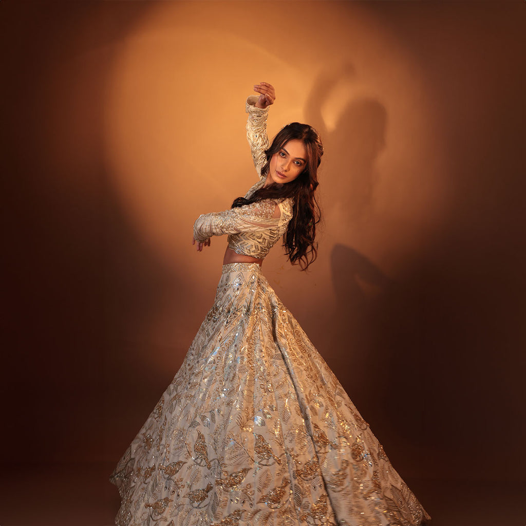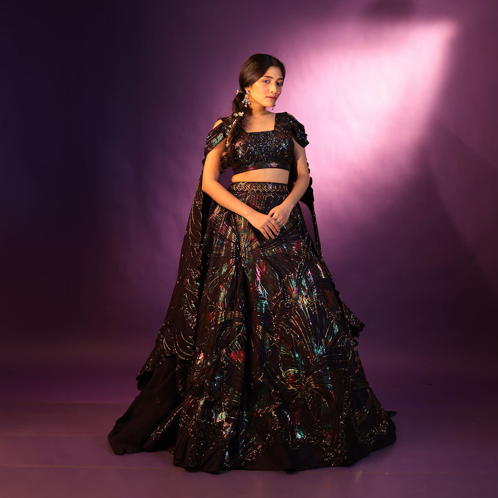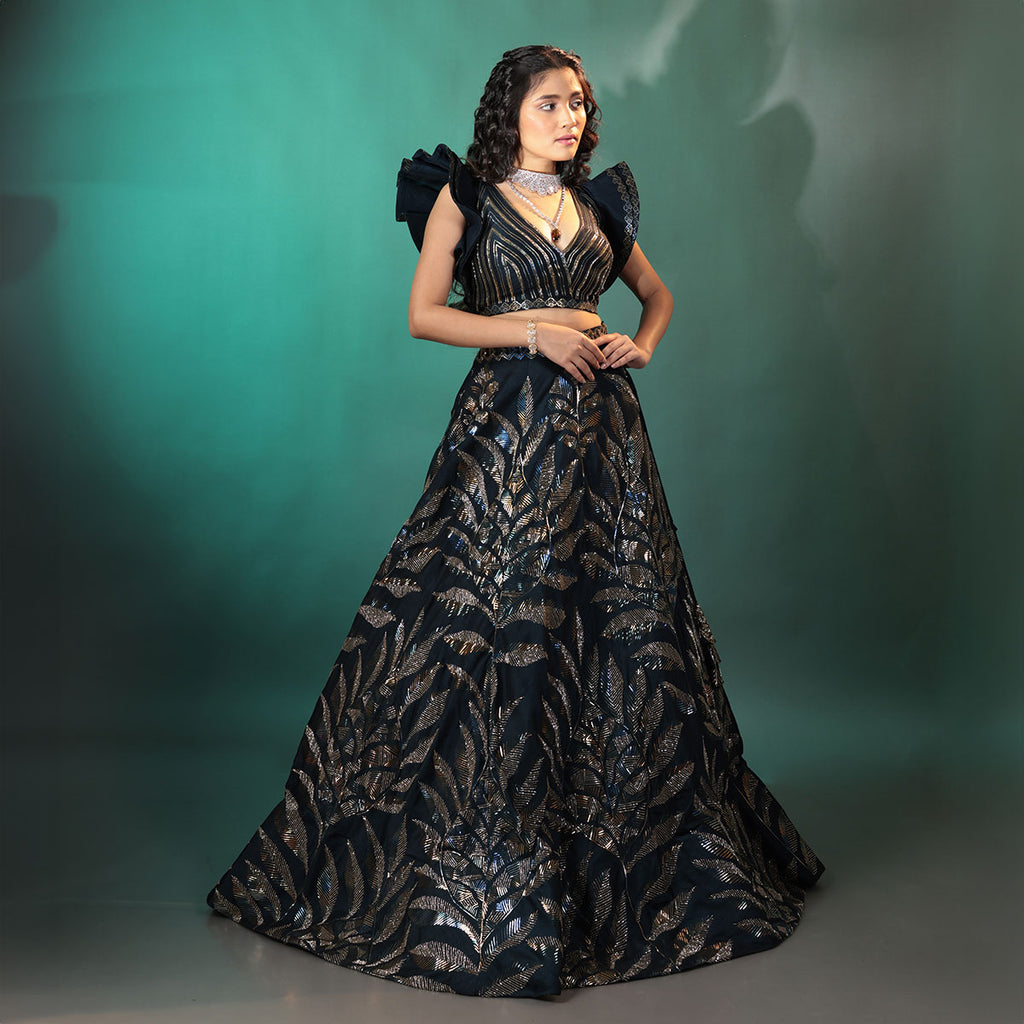 Cocktail lengha with gold highlights