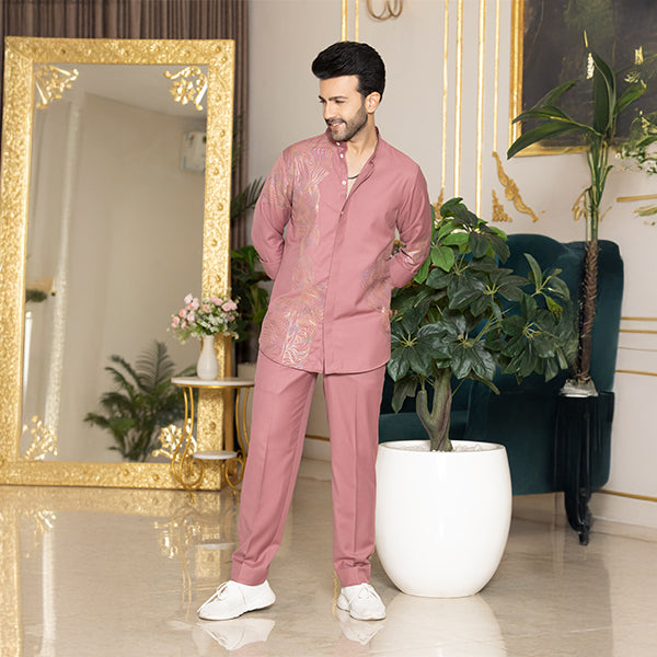 Coord-shirt with embroidery details and matching trousers