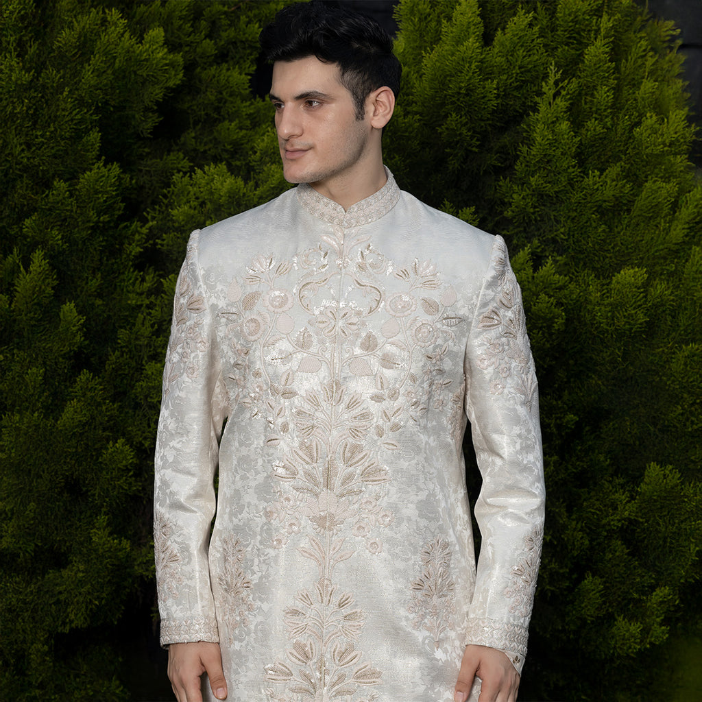 Sherwani set with intricate hand embroidery