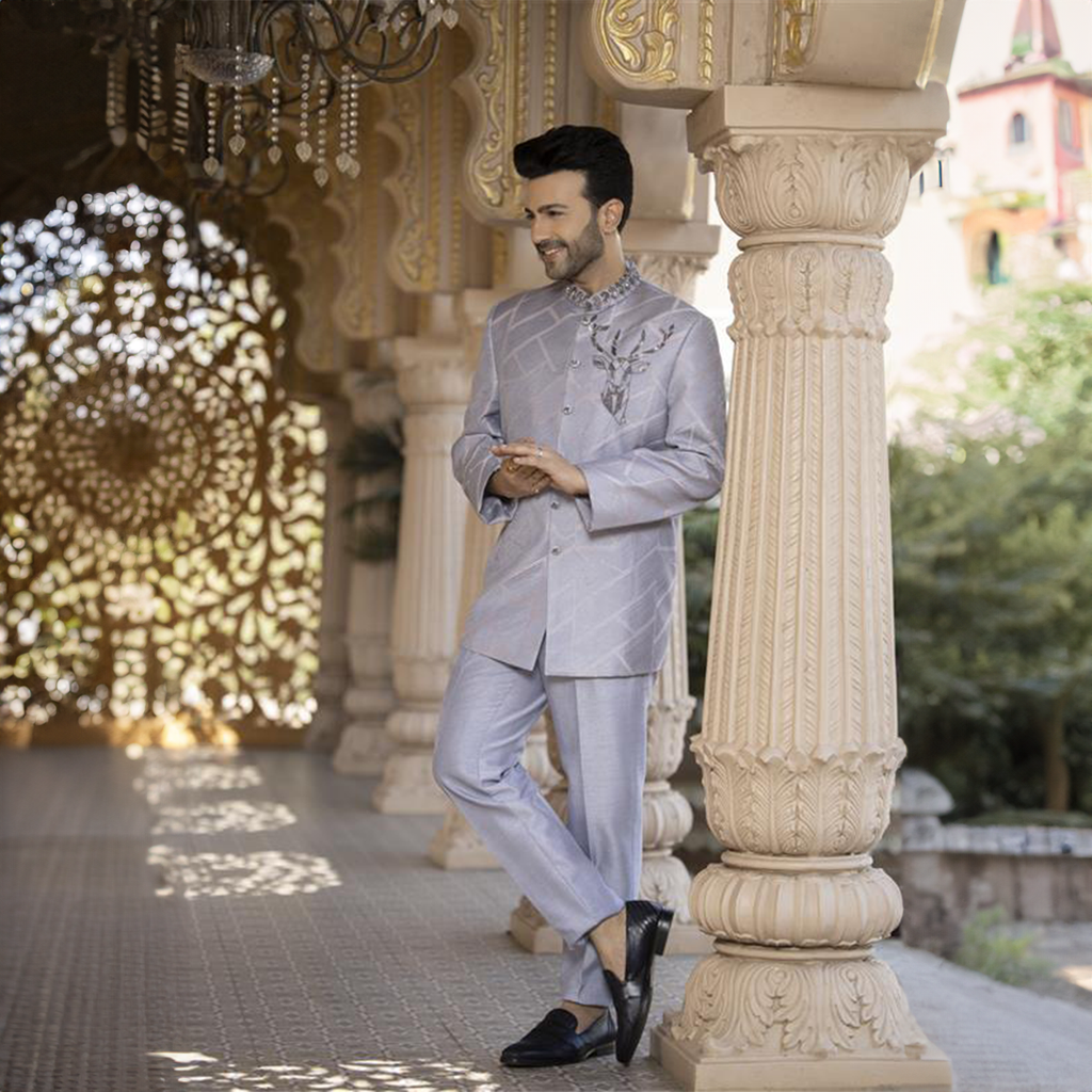 Indowestern style achkan with handwork embellishments