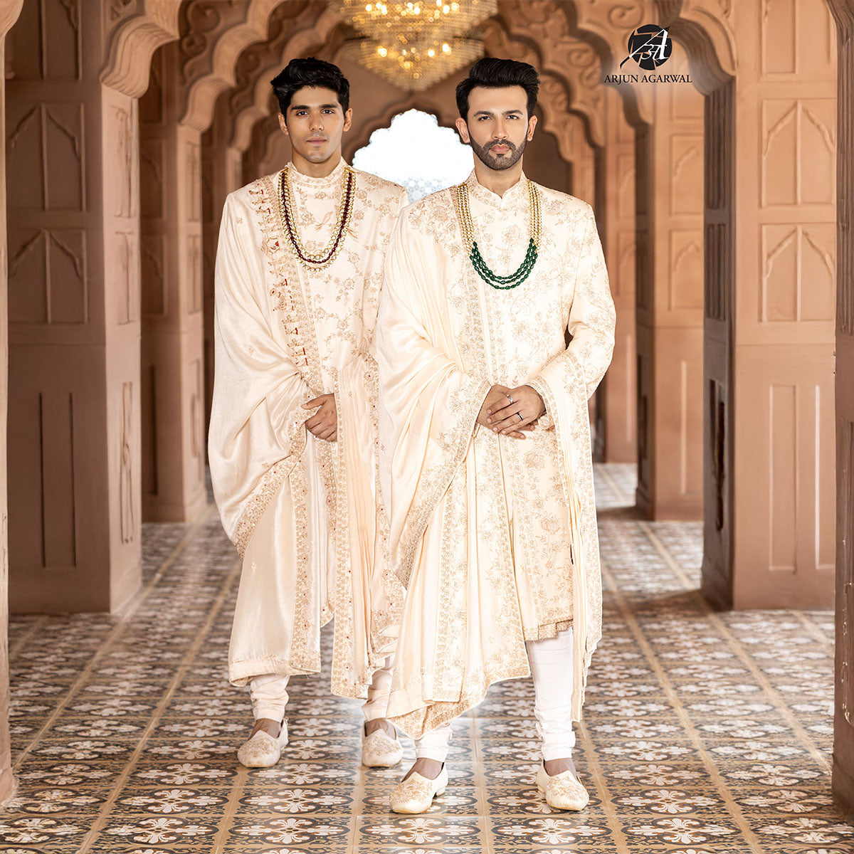 sherwani ,kurta, churidar, shawl, saafa fabric, shoes, kamarbandh, tani, sevra
