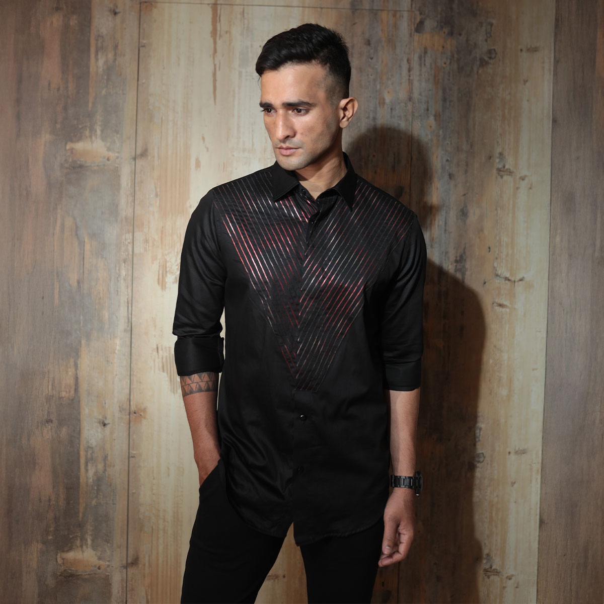 featuring a blue shirt in cotton base with hand embroidery details. ideal for dinners parties brunches lunches.